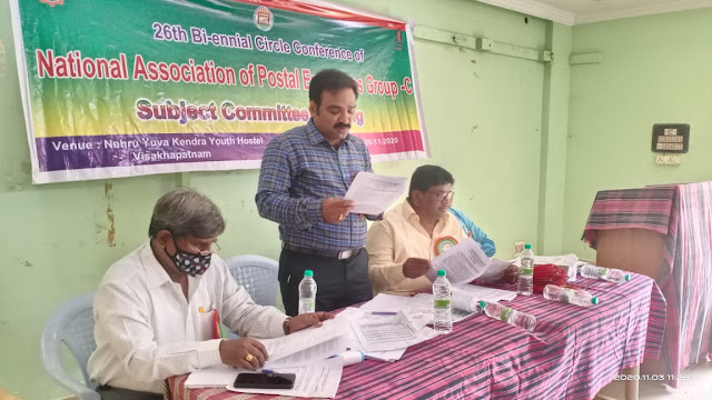 Subject committee was held on 3.11.2020 at 10 AM. Many of the delegates participated in the debate and discussed the serious problems like CSI, RICT, and provision of infra structure, 7th CPC related issues, MACP, RTP, Various Court cases, cadre restructuring , GDS Pay Commission and its adverse effects, IPPB related issues.
